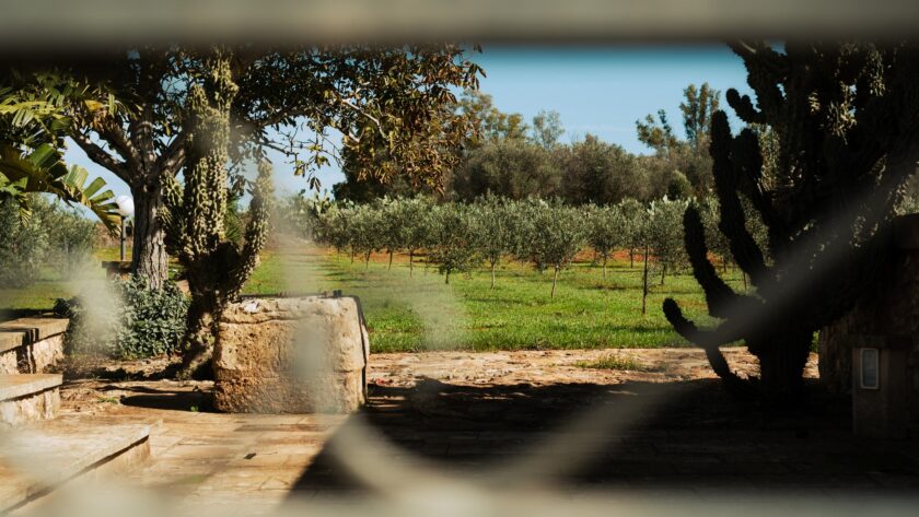 Il viaggio comincia in una masseria storica immersa nel cuore verde del Salento. La campagna è un mosaico di ulivi secolari, fichi d’India e pietra bianca che riflette la luce.